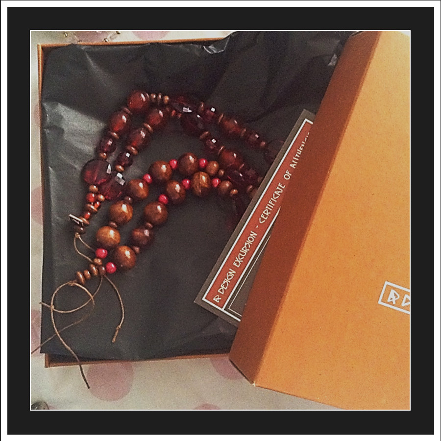 Each piece is wrapped in tissue, with a certificate of authenticity, signed by the designer. It is tagged with a copper tag with our logo, and placed carefully in a recycled box with our logo for you.
