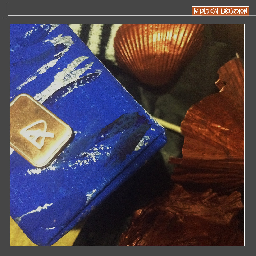 I painted some paper umbrellas top copper. The blue stripes are underneath.